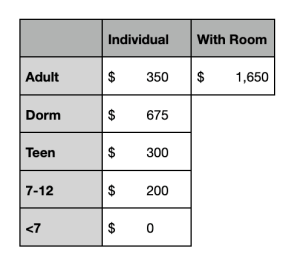 Your attendance fee is determined by the following factors: age of attendee, accommodation type, and any special diet requests. For more information about the types of accommodation available, please see the Accommodations page.